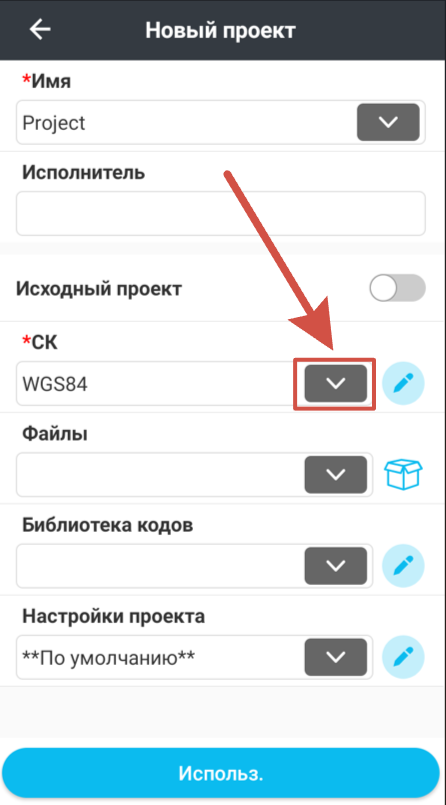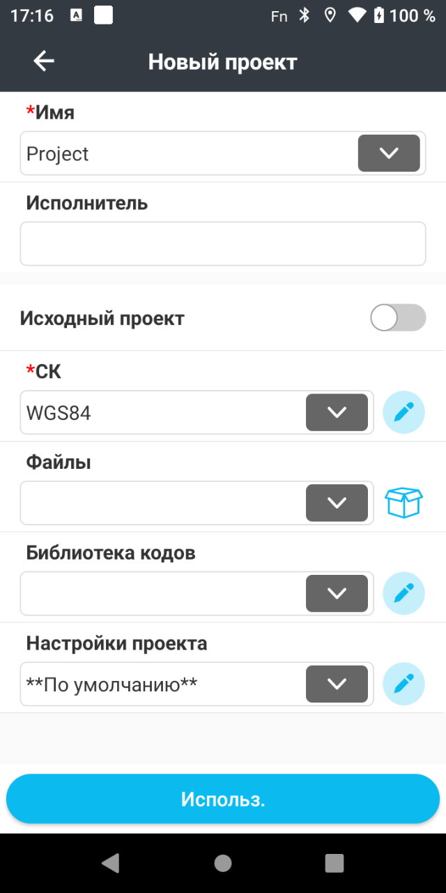 5. Для создания проекта нажмите кнопку "Использ." в нижнеё части экрана.