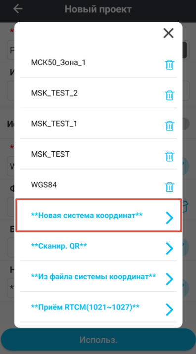 "Сканир.QR" - Функция позволяет получить систему координат с другого устройства с помощью QR-Кода.